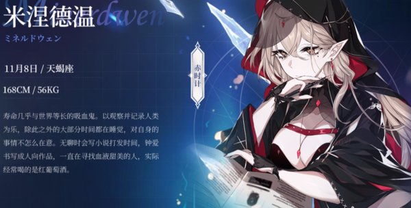寿命几乎与世界等长的吸血鬼。以观察并记录人类为乐,除此之外的大部分时间都在睡觉,对自身的事情不怎么在意。