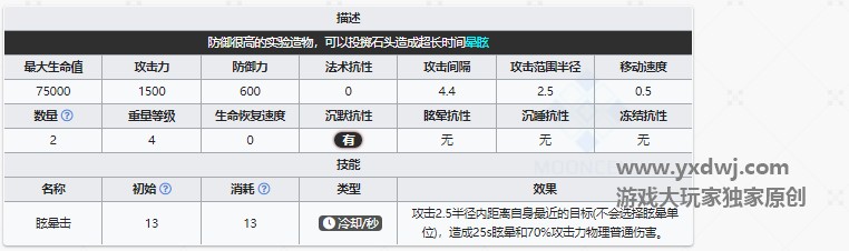 这个石头人进点会扣两点血,然后会对自己的2.5半径范围内最近的敌人扔石头。