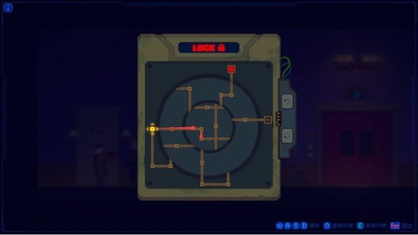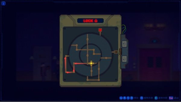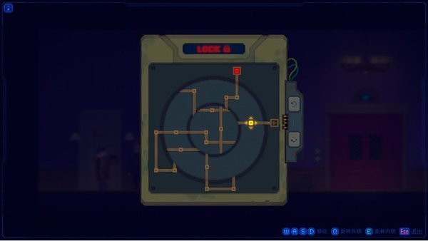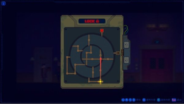 来到303佩里夫人门口,发现门被锁了,进入解锁小游戏。这个游戏需要拨动内外盘,将光点移至红点处。我们先转动外盘,将光点向左移入外盘。