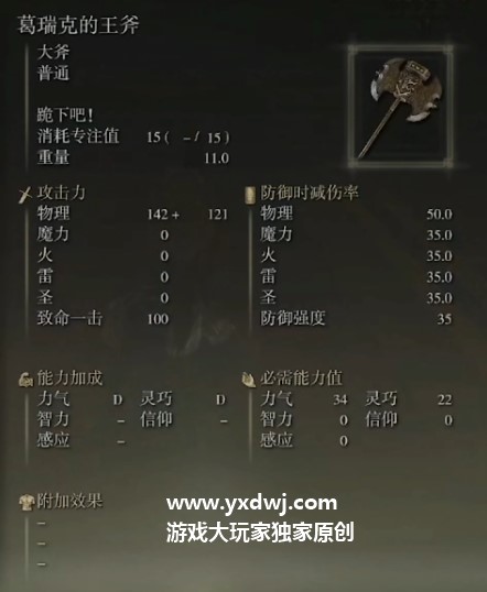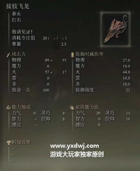 这是一个要求三种属性的拳套,力量灵巧信仰都需要,而且吃到三种补正。