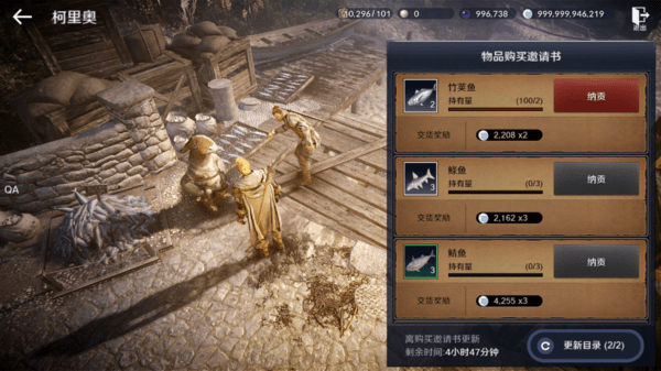 简介:在各主城与村庄的鱼纳贡NPC可进行纳贡鱼,把我们在钓鱼玩法中获得的各种类鱼进行纳贡获得银币