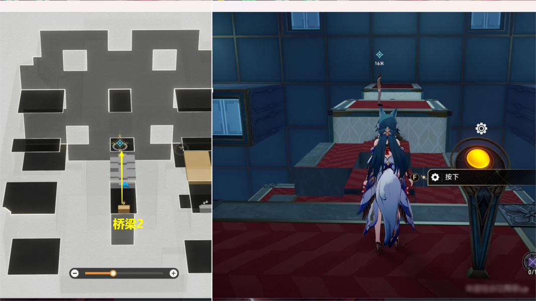 (3)从【桥梁2】上来后,打开右边【开关】过去对完话,解密完成。