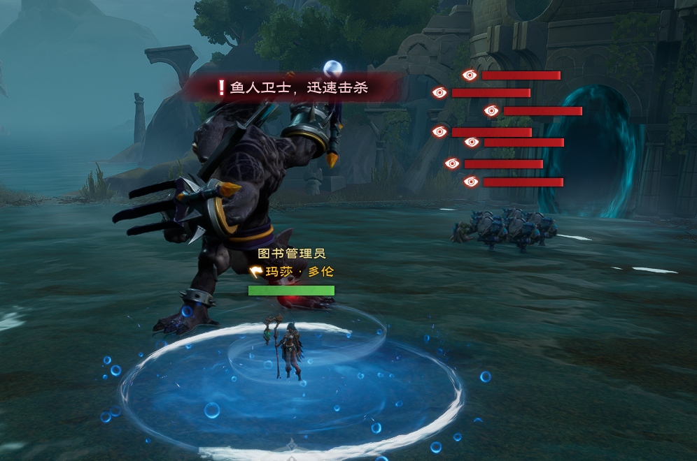 解法:首领会使用【召唤鱼人】,其中的鱼人萨满被击败后,其死亡位置会形成避风港。