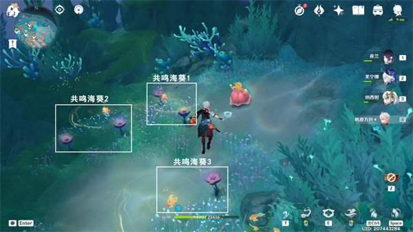2、当章鱼在共鸣海葵之时,点按,点亮共鸣海葵1-3。