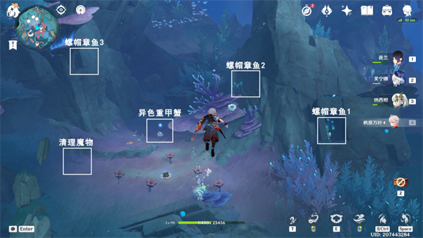 获得异色重甲蟹能力,跟随螺帽章鱼3,清理魔物。