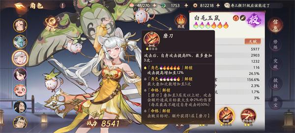 4、白毛玉鼠:攻击加成是非常高的,非常适合前期打装备关卡加上获取难度不是很大非常值得推荐,优先使用一技能进行低叠加伤害(3回合),再使用大招伤害会非常可观大招技能附带减少50%行动值。