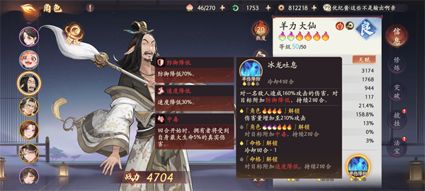 2、羊力大仙:100%大招减防70%尤其是前期对天地修习的镇元大仙是非常重要的再加上一技能会造成BOSS中毒效果造成5%的真实伤害,同时也是非常容易获得的角色,是非常推荐平民玩家选择。