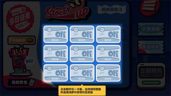 2、当全部的卡片翻起后即可解锁当前获取的随机奖励哦。