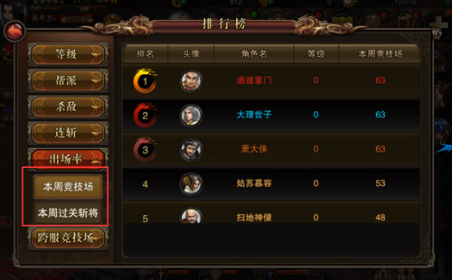 《仗剑天涯》江湖百晓生 排行榜系统揭秘