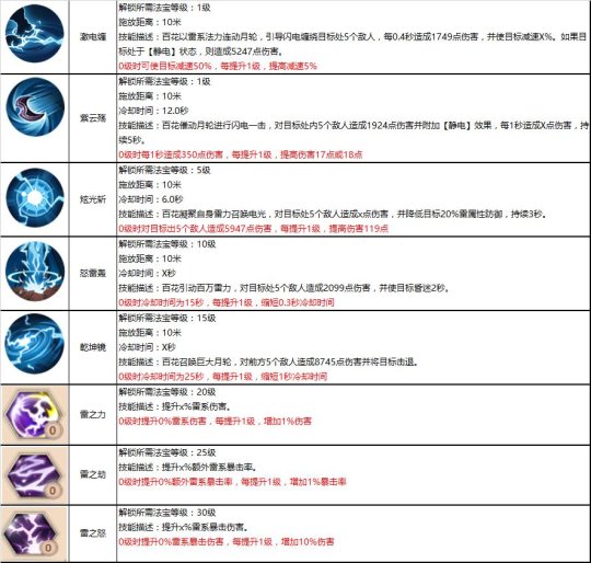 月轮加点:建议大家先点满“激电缠”来将减速效果最大化,随后点满“雷之力”和“雷之劫”来将伤害最大化,而之后的技能点玩友可以按照个人喜好分配到自己喜换的技能上。