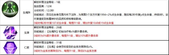 炼魔神针加点:初期我们可以点满“生津”来提高治疗暴击率,这样一来在治疗暴击的时候,我们的回复量就会获得极大的提升,而求稳的玩友也可以优先点满“生魂阵”来稳步提升自己的治疗量,出于自身生存能力的考虑,我们随后需要点满“仁慈”来降低全系伤害,降低被秒杀的风险。