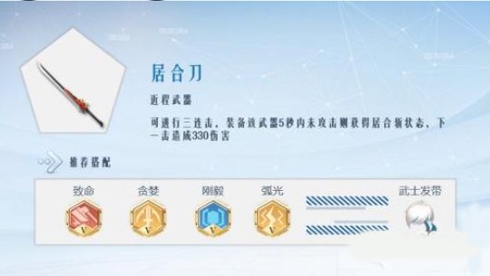 效果:可进行3连击,分别造成60/60/90伤害,装备该武器5秒内未攻击则获得居合斩状态,下一击造成330伤害