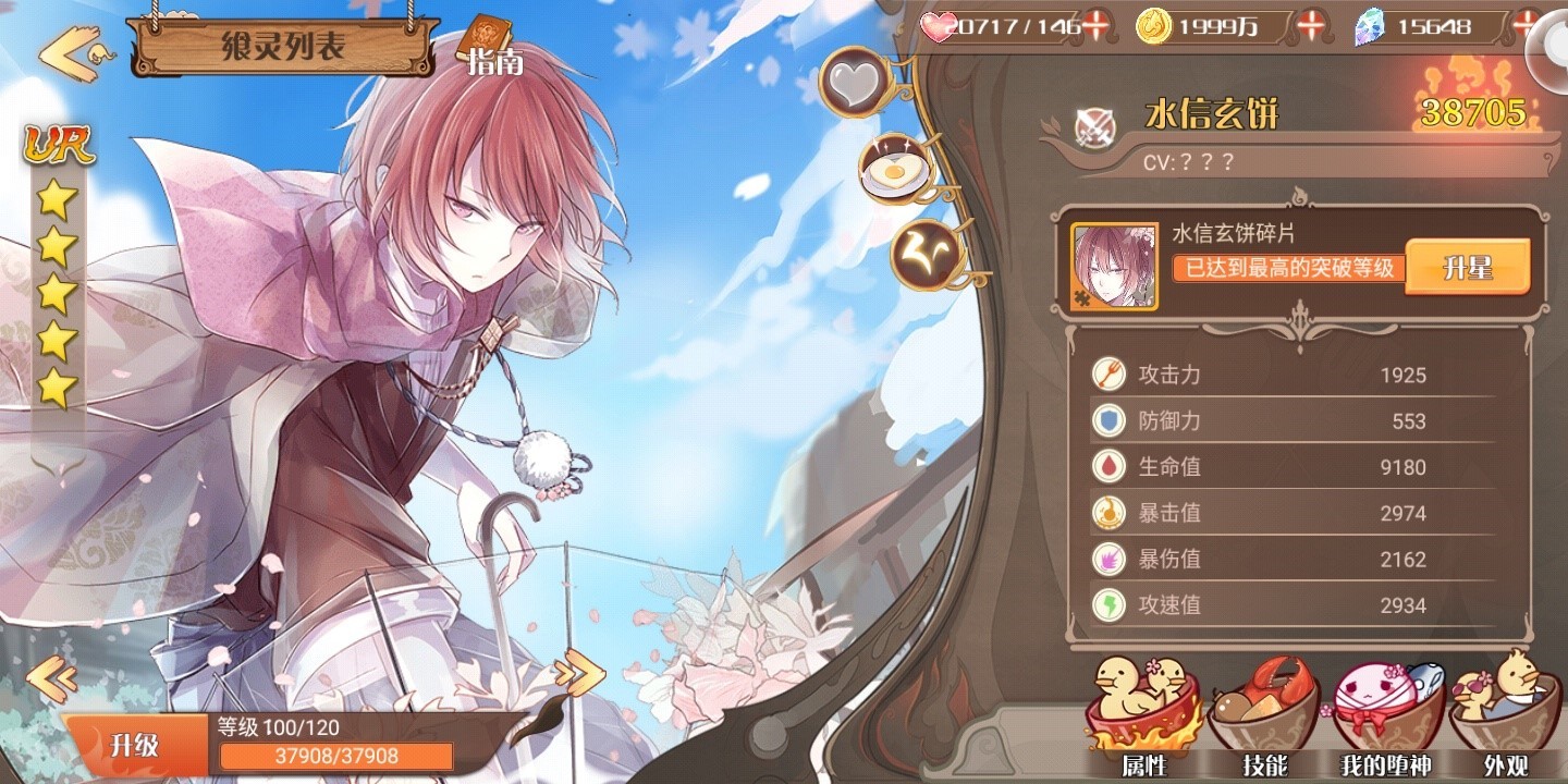 不是什么天生强大的飨灵,而且似乎因为一些事情,对人对事总是很悲观,但水信玄饼资质聪颖确是不容忽视。传说中,水信玄饼可以让御侍通过与它的共鸣,发动强大的水系技能, 然而代价是御侍的身体被强大水属性能量腐蚀后逐渐衰弱,并且上一任御侍就是因为交换力量过多承受不住而挂掉了。也正是因为这样,水信玄饼觉得自己是加速死亡的不详飨灵,需要一位天赋强大的御侍大人,才能够扭转他敏感脆弱的内心。