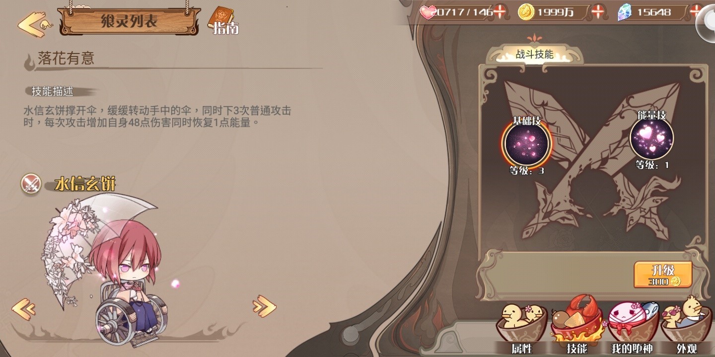 就像他曾经经历的那些事儿一样,水信玄饼作为一只UR飨灵,战斗力从来都不容小觑。虽然因为怕伤害到御侍大人,而不愿意再发动那强大的水系技能,但在水信玄饼拿起了手中的花伞之后,只需要撑开花伞转动几下,便能够发出丝毫不逊色于其水系技能的另一种能力:魅惑。