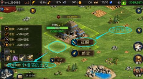 在出征之前建议对土地守军进行侦查,以最小的伤亡赢得胜利。如若守军较多,切勿盲目攻打,玩友可根据侦查战报调整征战策略。(除了侦查以外,玩友也可以派遣一个士兵攻打也能获得守军详情)