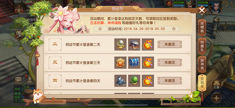 除了樱桃之外,在五一活动期间,《三国如龙传》还为玩友准备了一份神秘手游福利。玩友只要每日登录手游,即可开启全新惊喜。神将魂魄、五连招募、五彩神石等珍稀奖励免费赠送,让每一个玩友能早日更进一步,与心仪神将结缘!
