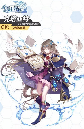 她是名为《水神克塔亚特》的魔法书,而非水的神灵——这点总被不了解克苏鲁神话的新伙伴误会。希望交许多朋友,经常幻想自己受欢迎的样子并一个人傻笑。但不擅长和外人交流,说不了几句话就会浑身冒汗而浸湿书本....也因为这点使得她的伪装很容易被识破。与身为混沌之水的努恩亲近;此外,在听说她可以让深潜者接触和召起拉莱耶城之后,沉没大陆亚特兰蒂斯之王亚特拉斯热情的好奇心,让克塔亚特也有些招架不住。