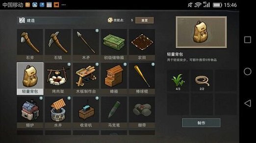 工具用途:角色默认可拿10种物品,若背上背包可以额外携带五件物品,增加携带资源的能力,背包一般都是出门必备的装备。