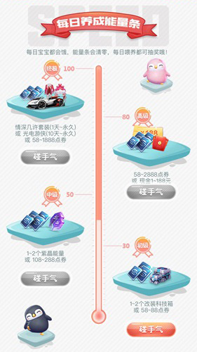 活动任务每天都有奖励,当能量值达到30、50、80、100的时候,都可以点击“碰手气”来抽取奖励。