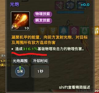 但是呢 光炮作为一个能达到70M+射程的技能拥有316%+的基础伤害百分比在大型团战中是具有绝对优势的,毕竟别的职业才20m 30m左右的射程,这也是为什么新区里有些新手玩友莫名其妙没看到人就掉了一大管血,然后看一下伤害记录;XXX土豪使用光炮对你造成XXXX伤害,您已死亡。