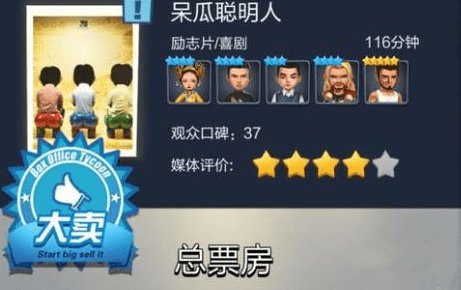 这个是非常重要的,你需要去提升演员的属性,这样才可以提高电影的属性,当满足大部分观众时就会出大卖以上的电影。