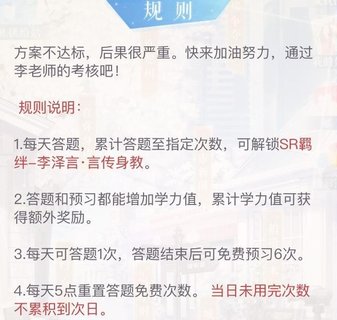 每次答题完有6次免费预习:获得30学历值。