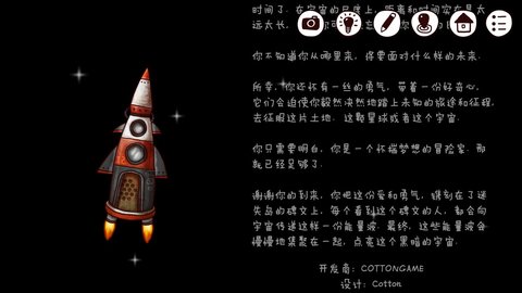 第三个成就 第一次通关以后,点击开始新手游(即二周目),会有新结局,火箭飞上天,然后一直一直一直…任它飞,飞一段时间后它的界面会改变,变成降落在一个地方。就拿到第三个成就啦。