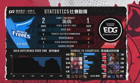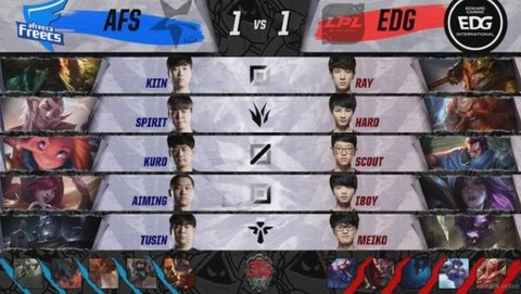 4分钟Haro抓下,E闪命中佐伊后由iBoy卡莎拿下一血;前期双方平稳发育,EDG多次企图针对上下路发动节奏却出现配合失误屡屡未能得逞,AFs的双中利用推线优势率先拔掉中路一血塔,Kiin的船长也在上路取得完美发育拔掉上塔,AFs取得全面视野主动,在小龙团战中打出完成一波1换4后领先了5K经济;24分钟风云突变,Kuro佐伊睡到酒桶后AFs选择强行开团,但唯一的核心霞吃到亚索击飞,卡莎进场打出收割局面,EDG打出0换4后顺势吃掉大龙,推掉三路一塔后双方再次进入均势;33分钟AFs凭借视野优势再次拿下大龙,展开兵线运营发起最终攻势;高地攻防战中EDG迫于远古龙压力由Meiko先手开团,但卡莎进场吃到慎嘲讽先手被秒,霞后续打出爆炸输出助AFs完成0换4,一波终结了比赛。