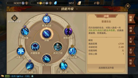 ②每1层缩短【冰霜箭】0.25s的施法时间(缩短的不知道是基础施法时间还是受急速影响后的施法时间)