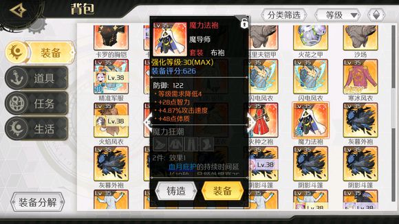 装备提级要同类别高十级的装备