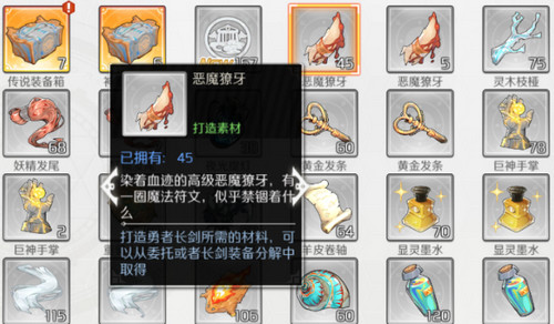 另外恶魔獠牙的使用方法是点击角色赠送物品按钮,然后选择右上角的珍惜度降序,从白色的材料中就能够找到你想要的素材恶魔獠牙了!