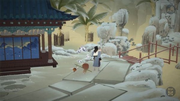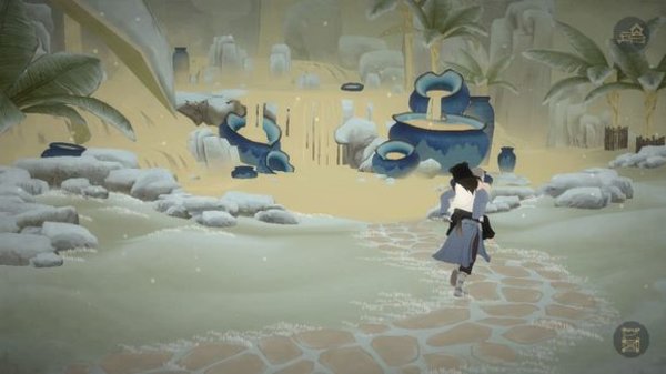 首先,在绘真妙笔千山里,想要进入蓝色的大门,我们需要在游戏里找到能够修复蓝色物品的精灵,又叫做羽青精灵。在我们将红色的断桥修复好以后,通过红桥继续前进,可以发现一个蓝色的染缸。