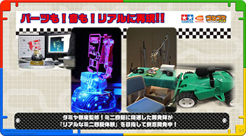 官方表示,关于游戏内四驱车的部分,将交由小学馆旗下漫画杂志《快乐快乐卡漫特刊(コロコロアニキ)》的编辑部监修,期望打造出「献给所有四驱赛车手最快的四驱车游戏」,目前正积极进行开发。