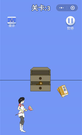 脑力大逃亡3之爸爸的零花钱第三关中有一个柜子,里面有两个抽屉,这一关要怎么过呢?首先要去抽屉里面找东西,你会发现能找到一个胶带,然后用胶带把箱子封装好,站到箱子上就能取到钞票了。