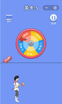 脑力大逃亡3之爸爸的零花钱第五关游戏中给了一个抽奖的转盘,是不是抽中一等奖就能拿到钱了呢?当然没有这么简单,你要先找到到任意一个飞镖,用飞镖身中靶心才可以顺利过关。