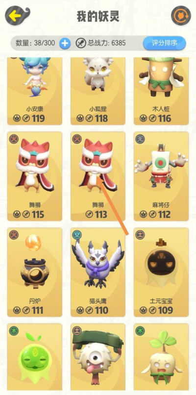 3、然后在我的妖灵里,你会发现里面有很多妖灵,这时你需要先点击你想收藏的妖灵,比如我点击【舞狮】。