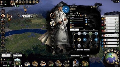 游戏的目的无非是通过合纵连横,慢慢壮大自己的版图和军事力量,并最终一统天下。在模拟部分的大地图上,每一个回合都需要去调整军事外交,比如和不同好感度的曹操、袁绍等进行宣战,联姻,或者贸易往来,还有根据自身的发展,进行工农商的改革,比如增强粮食生产百分比,减少军事维护费等,这个加点是在一颗真·技能树上进行的(5回合1次),另外,向不同的军事力量派遣细作,建立一个情报网也非常重要。