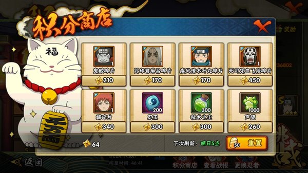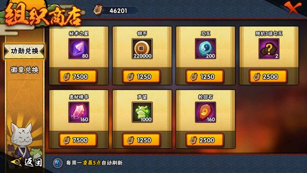 组织活动尽量不要缺席,组织功勋换铜币和忍玉(声望)二选一
