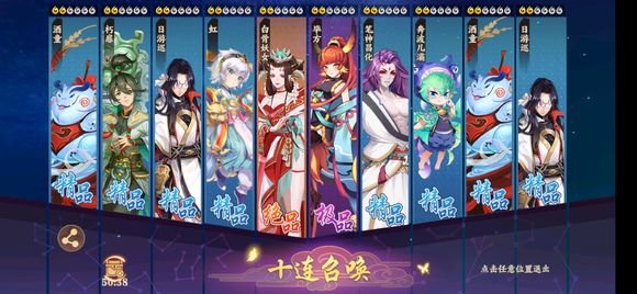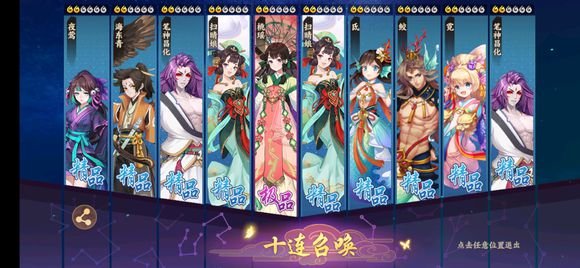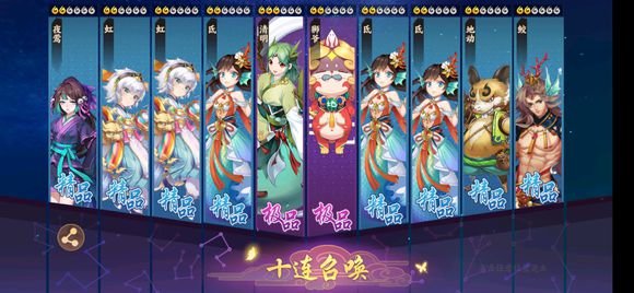 云梦四时歌第一次10连抽:结果没有绝品,算是失败了,希望能20抽保底橙色。