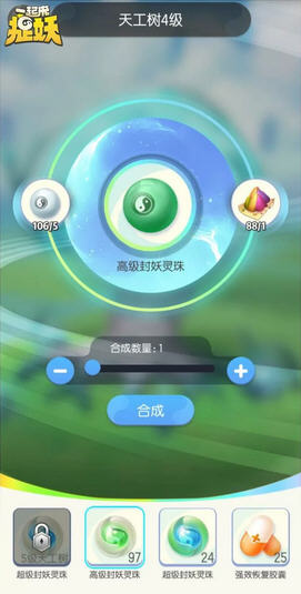御灵师打开天工树界面的“合成”按钮,即可通过消耗低级材料与五色土的方式,合成高级材料啦!