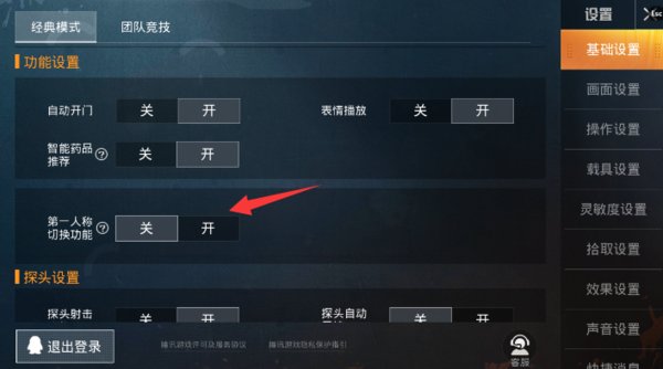 2、在设置中找到第一人称切换功能,点击并开启;