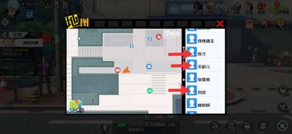 同样进入津洲港地图后也是点击右上角的小地图,会有他们的名字,点名字自动寻路。