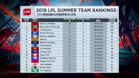 LPL夏季赛已经进入到最后三周的争夺,目前除了积分榜前三的队伍基本上已经锁定季后赛席位,从第四名的IG一直到第十名的WE,这些战队之间胜场差都在三场以内,大家都有冲击季后赛的希望,相信联赛后面的争夺会更加精彩。