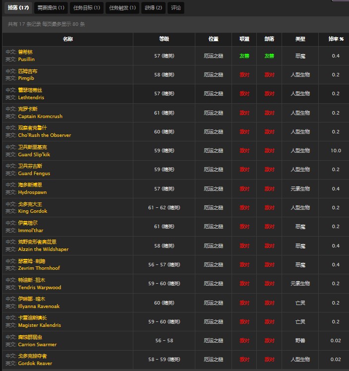 束缚之影是一本术士职业任务书,在厄运之槌中所有的boss都有概率会掉落,掉落数值如下: