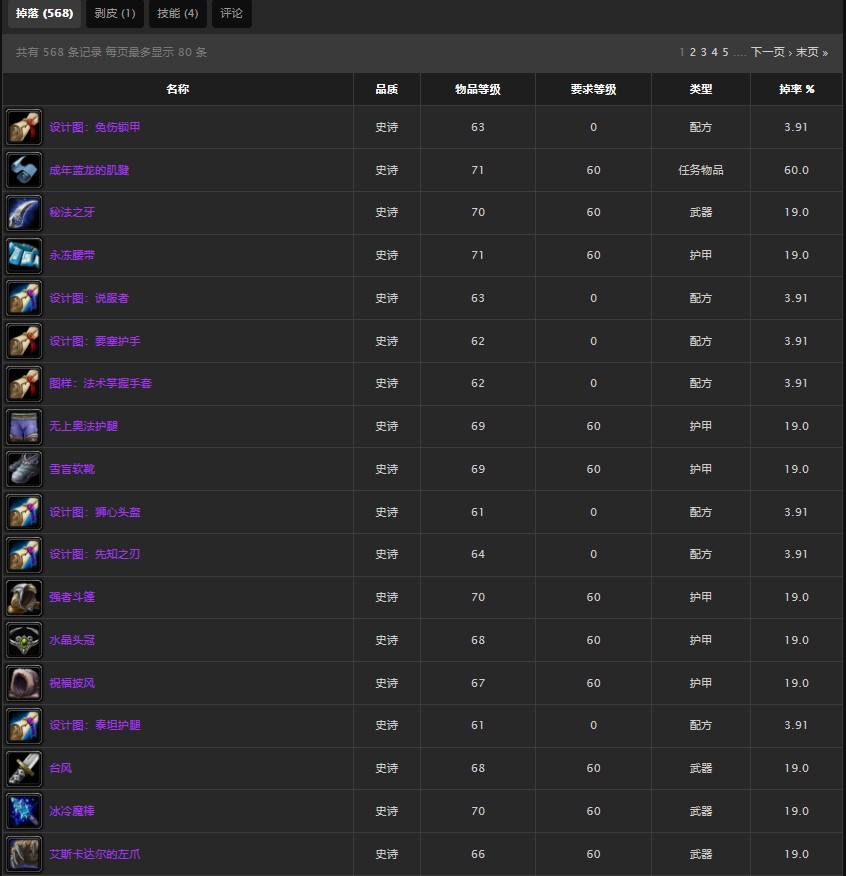 掉落装备列表如下: