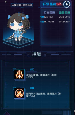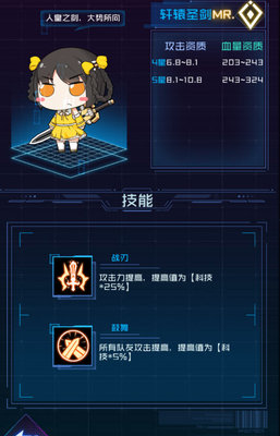 被动1:自体攻击力提高科技值*25%的数值。