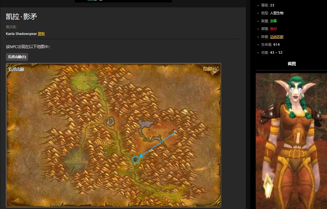 玩家可以在石爪山脉的凯拉影矛处接取到怒灵任务。
