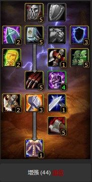 第三层强化图腾点满,增加图腾效果。双手专精1点,增加武器可选性。预知点满,提升躲闪几率。