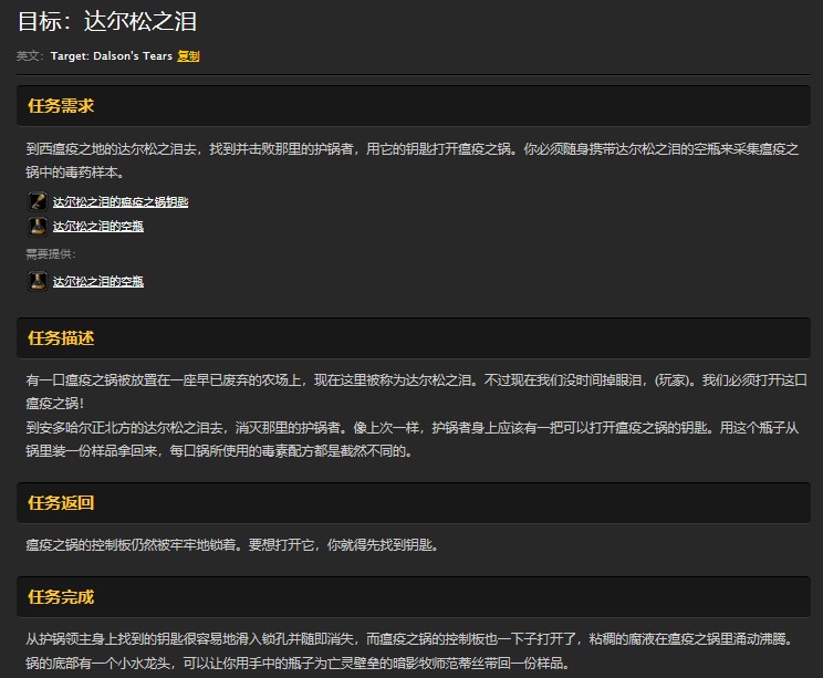 达尔松之泪的瘟疫大锅是玩家需要前往的第二口锅。