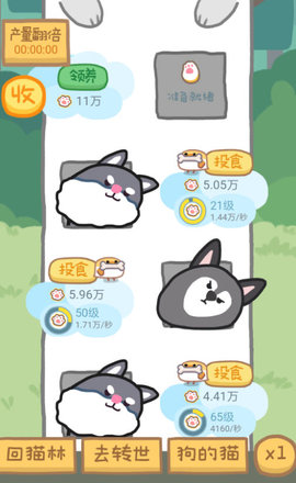 每一颗猫树点进去,狗的猫。改名字边上,9-21代表转世九次,目前该猫树上有21只狗,下面的收益翻倍代表的是转世收益,没有包括全栋最旺的狗收益加成。